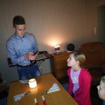 den Jungs war: Mama, darüber müsst ihr euch keine Sorgen machen, wir planen schon etwas. Boa dachte ich, mir fällt ein Stein vom Herzen. Obwohl Essen ja nicht das wichtigste an Weihnachten ist, gehört es doch dazu. Es war wirklich erleichternd zu wissen, da denkt jemand mit ? Mike, Kevin und Nico haben selber eingekauft was dazu gebraucht wurde ? Dann kam der 24.12.18 ? Nach dem Gottesdienst in der Kirche, sollten wir, außer Mike und Kevin und Nico, ins Wohnzimmer gehen. Das Wohnzimmer war sehr gemütlich eingerichtet, mit Kerzenschein, ein großer Tisch mit Speisekarten drauf ? Wir fühlten uns wie im Restaurant ? Nico kam und nahm mit dem Handy die Bestellungen auf, die er in die Küche zum Laptop weiterleitete ?? Es gab selbst gemachte Burger, mit Salat und wer wollte Pommes als Beilage. Ja, die Frikadellen wurden selbst gemacht und waren super lecker ? Als Nachspeise gab es Eis mit heißen Kirschen ? Das ganze war so liebevoll gestaltet, dass uns Tränen in den Augen standen ? Nach dem Essen saßen wir in der Runde und unterhielten uns über das verflossene Jahr. Über unsere Fehler, also was wir besser machen wollen und über Gottes Bewahrungen, von denen es ja sehr viele gab. Wir dankten Gott, dass er uns in diesem Jahr als Familie zusammen gehalten hat und keinem was schlimmes passiert war und das wir alle gesund waren ? Und dann kam die Bescherung ?